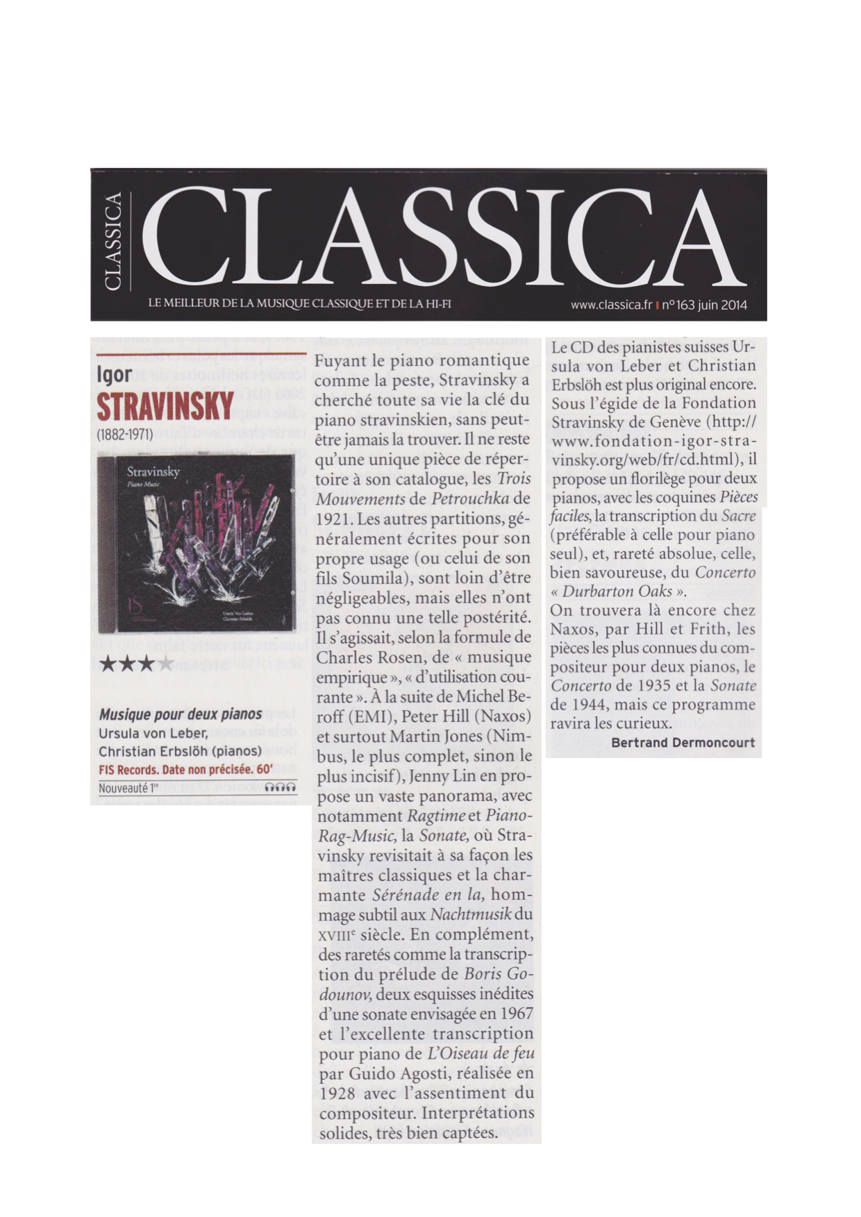 The talented piano Duet “Ursula von Lerber and Christian Erbslöh” offer here a beautiful and sensitive interpretation for the Igor Stravinsky Foundation